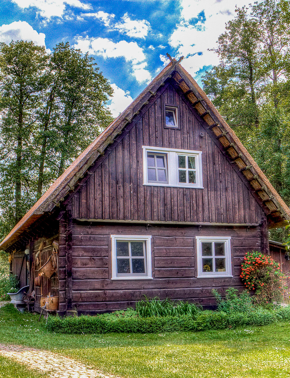 So haben wir den Hof vor 30 Jahren übernommen und mit viel Engagement wieder als spreewaldtypische Bohlenblockhäuser hergerichtet.